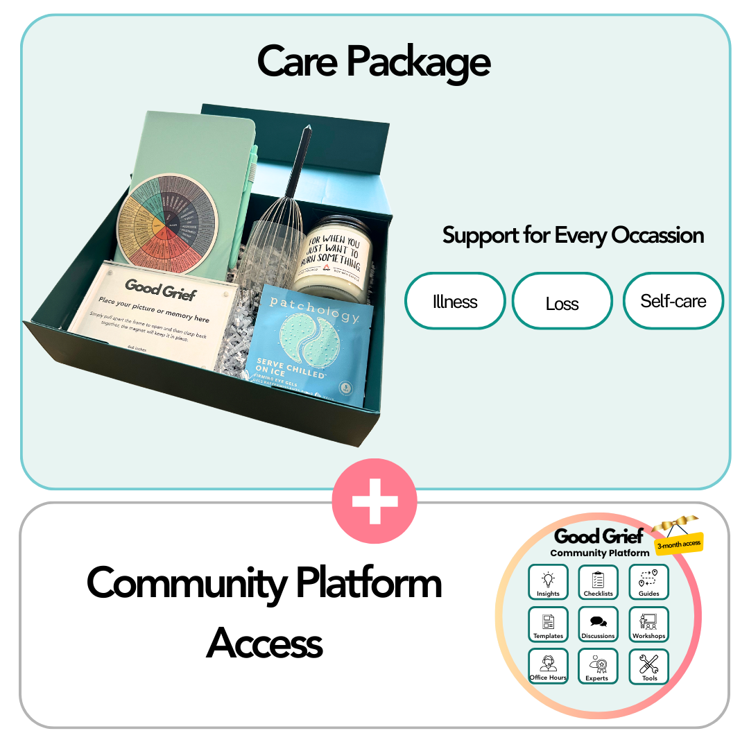 💡 Every package includes access to the Good Grief Community Platform — think of it as a companion hub for healing and guidance, with expert insights, helpful templates, guided workshops, and a caring community by their side.